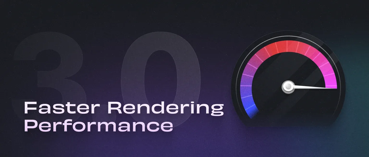 Rendering performance saw a major lift in Astro 3.0, with most components rendering 30% faster (vs. Astro 2.9). In complex benchmarks, the speed improvement can be as high as 75%.