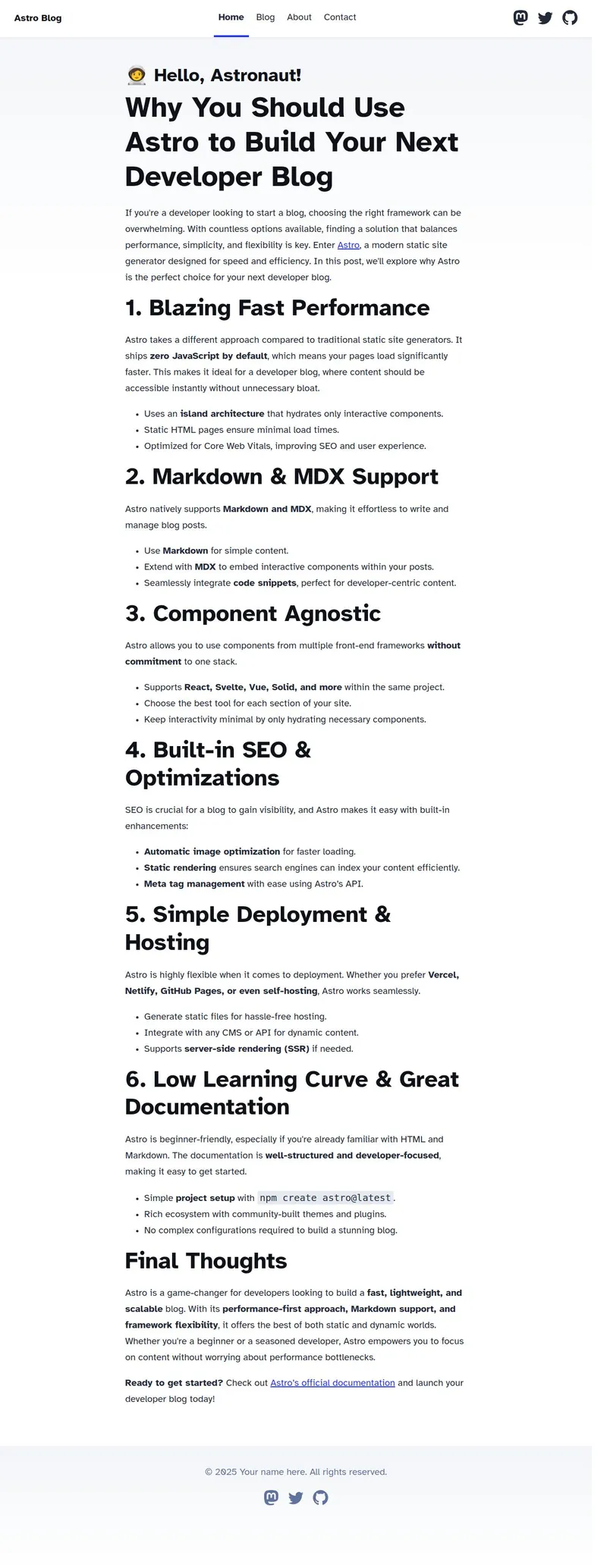 Looking for even more inspiration? See all the community member websites submitted to the Astro showcase this month. Submit your site built with Astro!