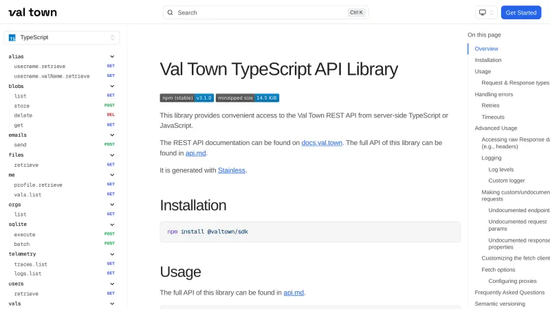Val Town TypeScript API Library | Val Town API Docs