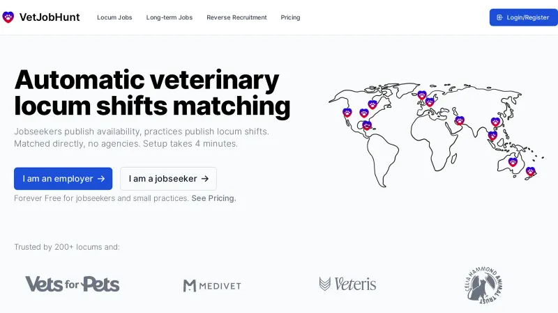 Vetjobhunt.com Global Automatic veterinary locum shifts matching