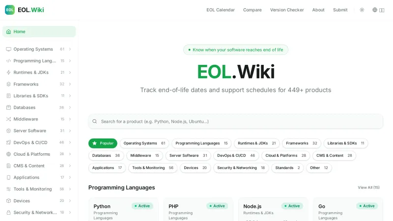 Software End-of-Life Tracker | EOL.Wiki