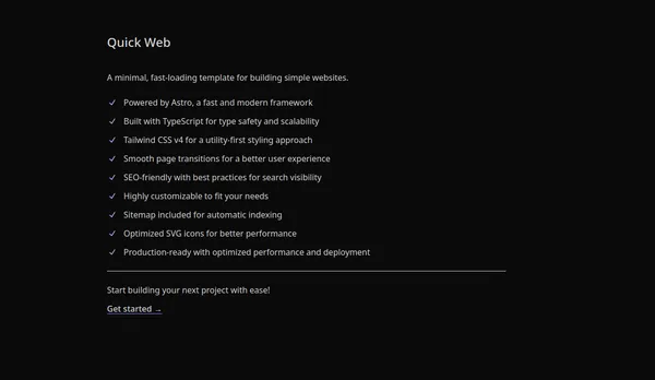 A minimal, fast-loading template for building simple websites and landing pages. Perfect for showcasing information with a clean, lightweight design.