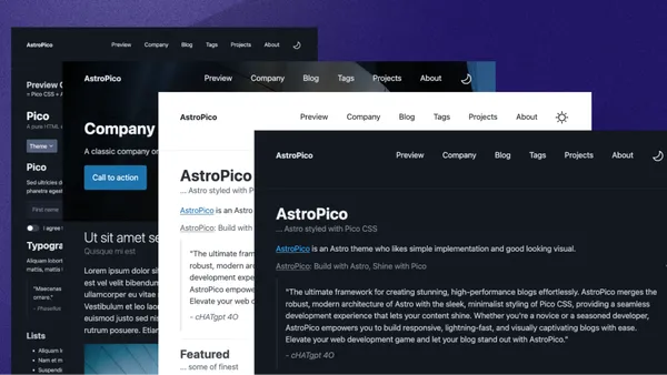 Astro styled with Pico CSS, build with Astro, shine with Pico.