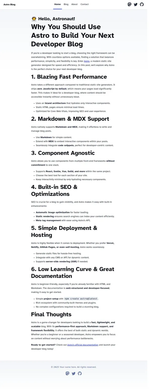 This is a minimal blog system that I use to write. It is based on Astro. Styling is done with Tailwind CSS. The theme was based off of a hugo theme named etch.