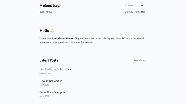 Minimal Astro + TypeScript blog theme with MDX and SEO. Fast, clean, and mobile-ready.
