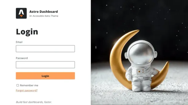 An Accessible Admin Dashboard Theme for Astro with a login page and a dashboard overview. Includes accessibility features such as landmarks, better focus-outline and skip-links navigation.