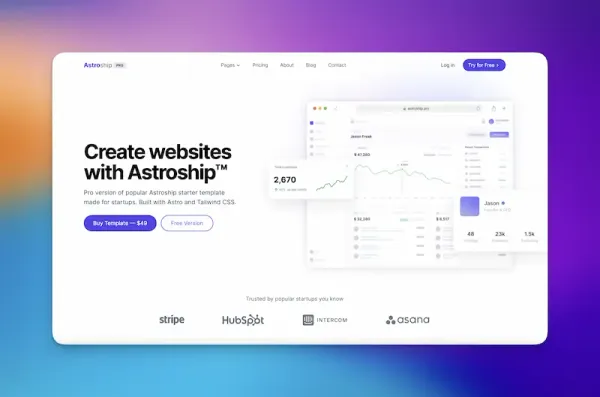 Astroship is a starter template for startups, marketing websites, landing pages & blogs. Free and Pro versions available.