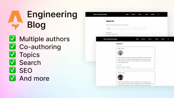 A template for creating engineering blogs with multiple authors, co-authoring, topics, search, and more.