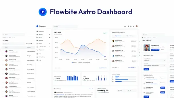 A free and open-source admin dashboard template built by the core Flowbite team that gives you access to UI components like charts, widgets, tables, CRUD layouts based on the Flowbite design system.