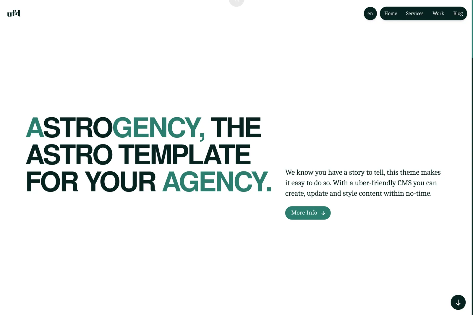 Astrogency is a versatile, modern template built for creative agencies and freelancers seeking a professional online presence. With performance and ease of use at its core, it delivers both speed and sustainability—achieving a mobile PageSpeed score of 98-100 and an impressive A+ energy label (~0.07g CO₂ per view).