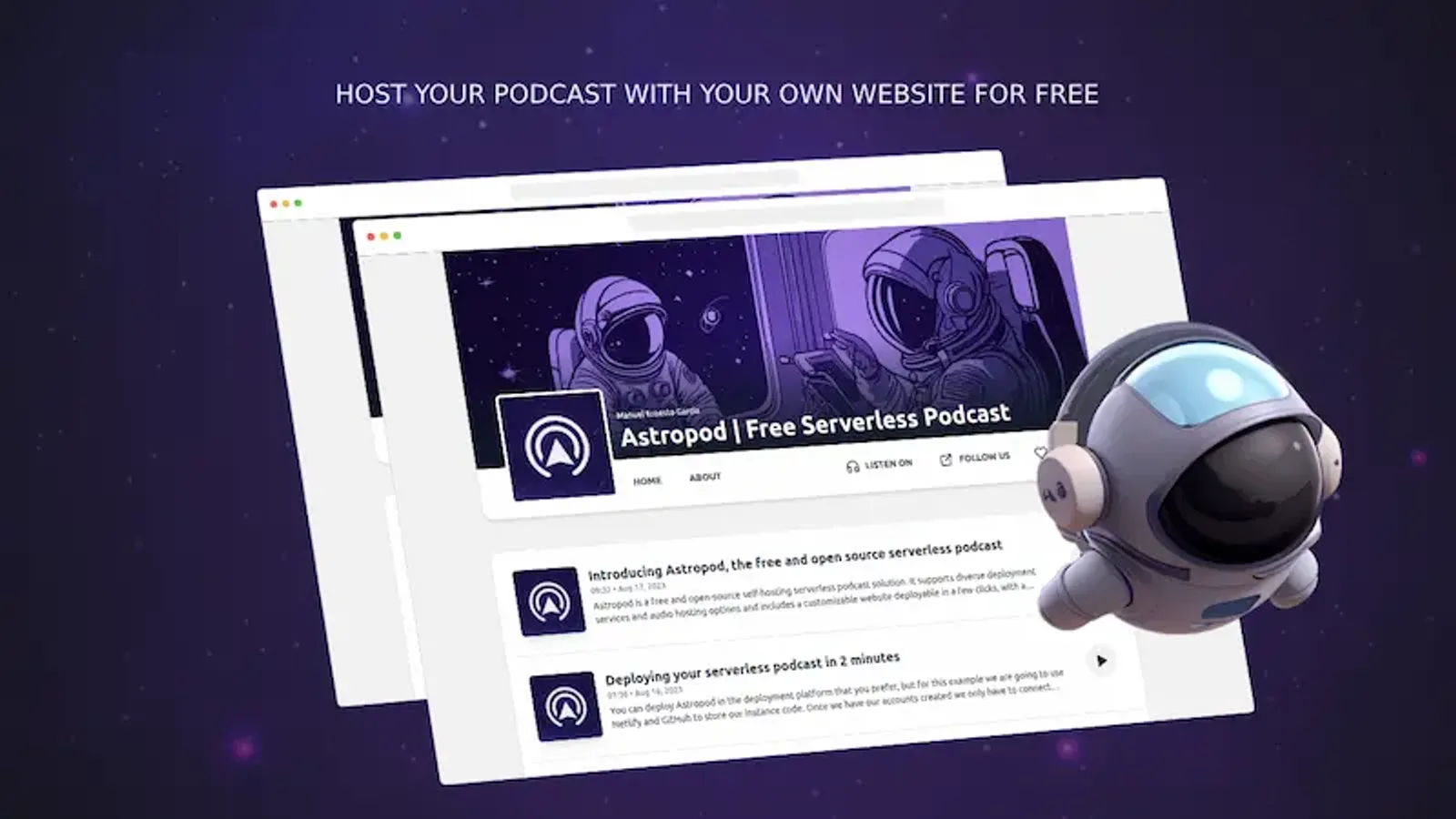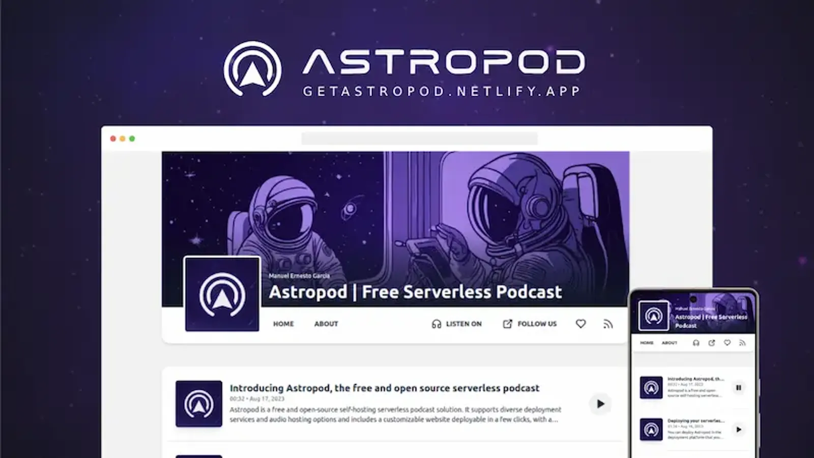 Astropod is a free and open-source self-hosting serverless podcast solution.