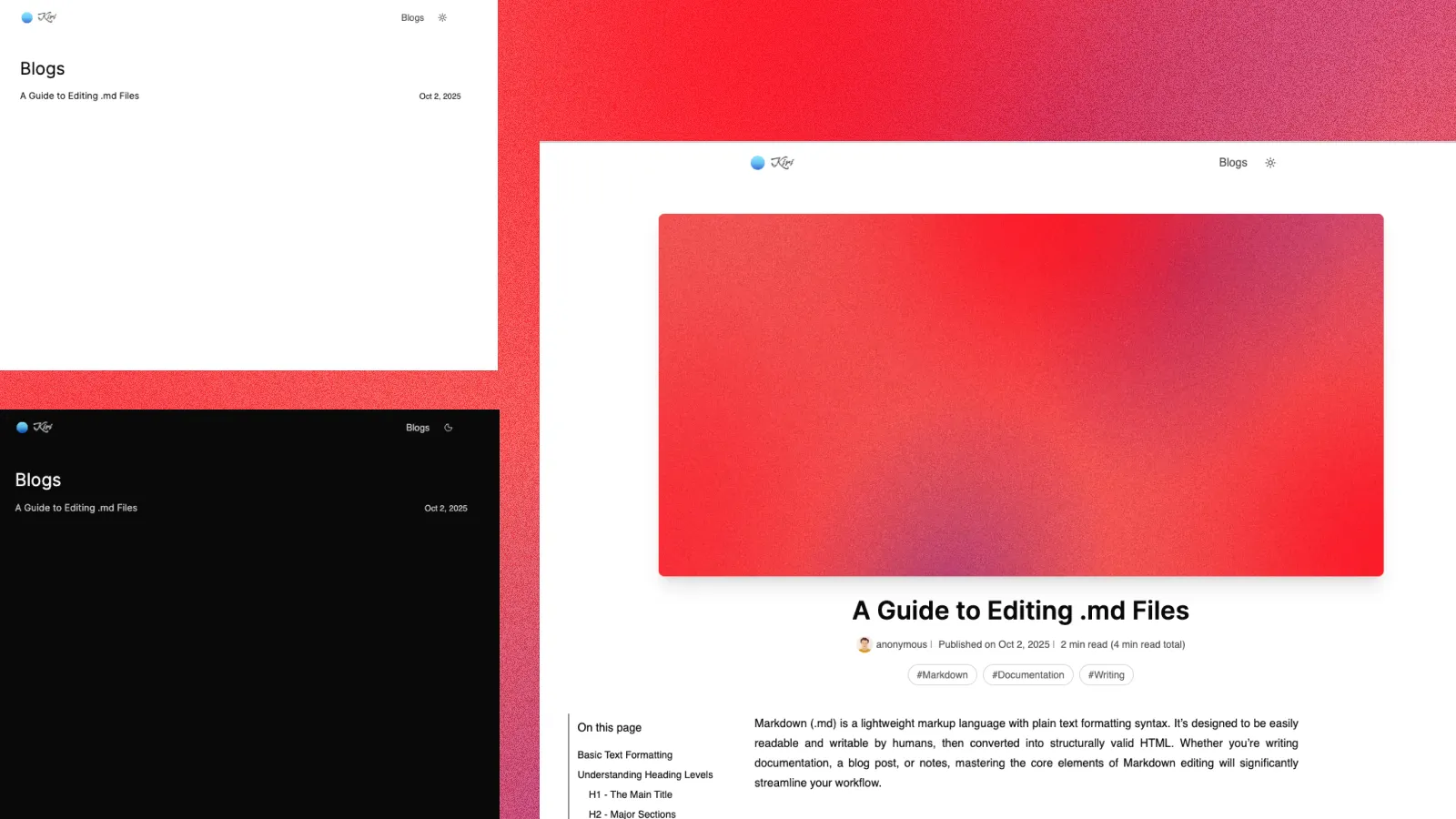 Kiri is a minimalistic blogging space built with Tailwind CSS, designed to be fast, lightweight, and accessible. It offers light and dark themes, clean typography, and modern blog essentials, giving writers and developers a distraction-free, customizable, and open-source platform thatβs ready to deploy as their personal space on the web.