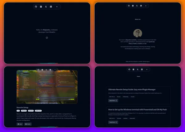 A sleek and responsive developer portfolio built with Astro, combining the power of TypeScript, React, and Tailwind CSS for a modern web experience. This template features elegant UI components from shadcn/ui, interactive icons with react-icons, and smooth scrolling effects powered by locomotive-scroll. The codebase is clean and well-structured, formatted with Prettier for consistency.