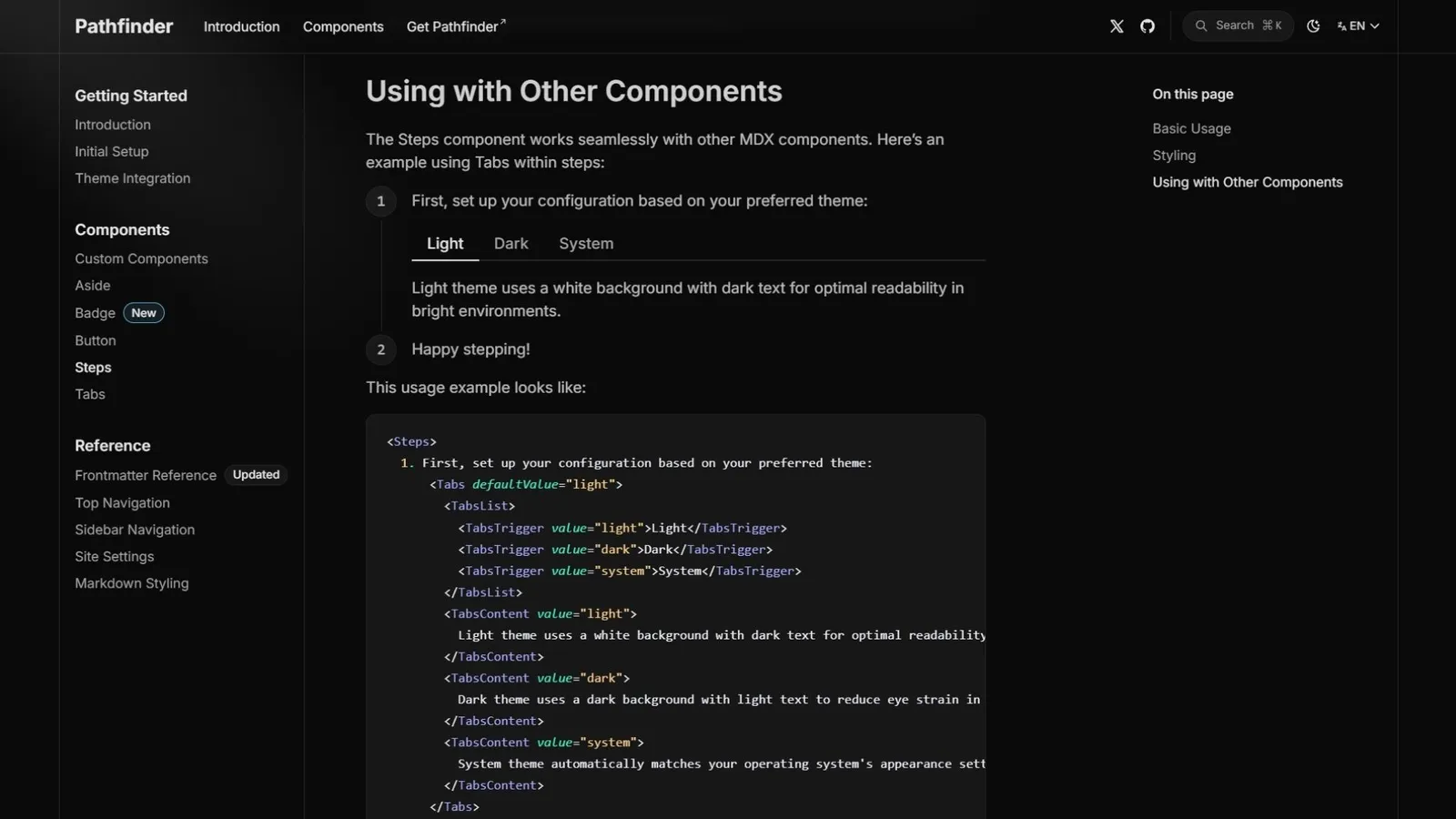 - Plus custom components, where you can cancel out default markdown styling with the not-content class