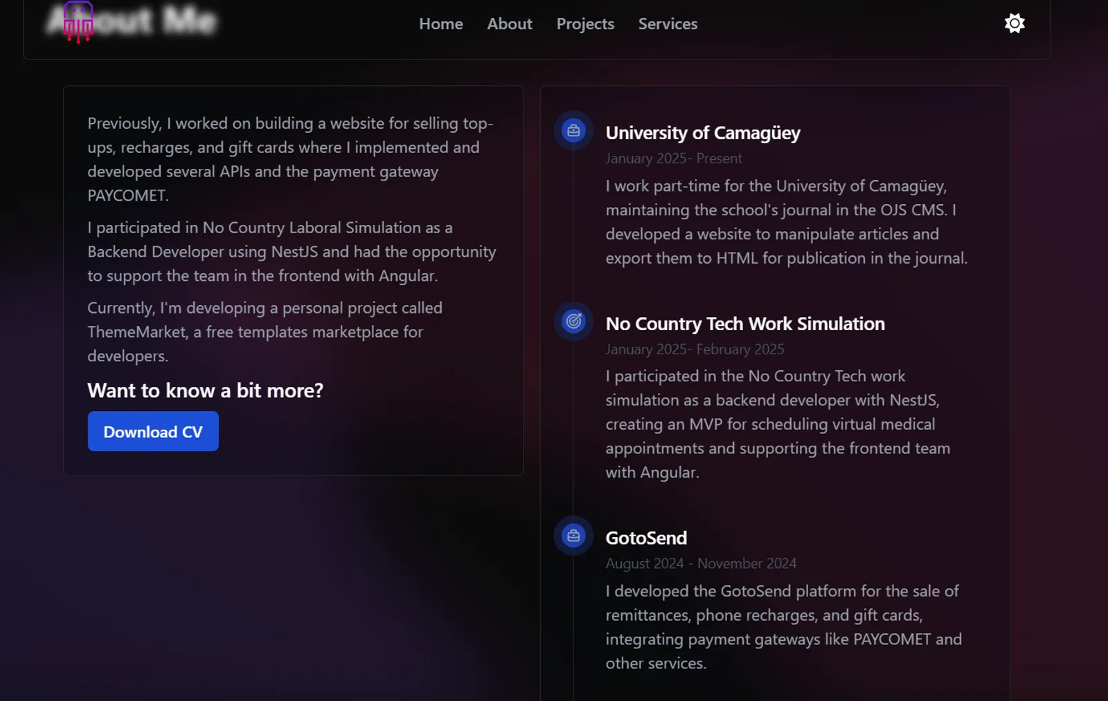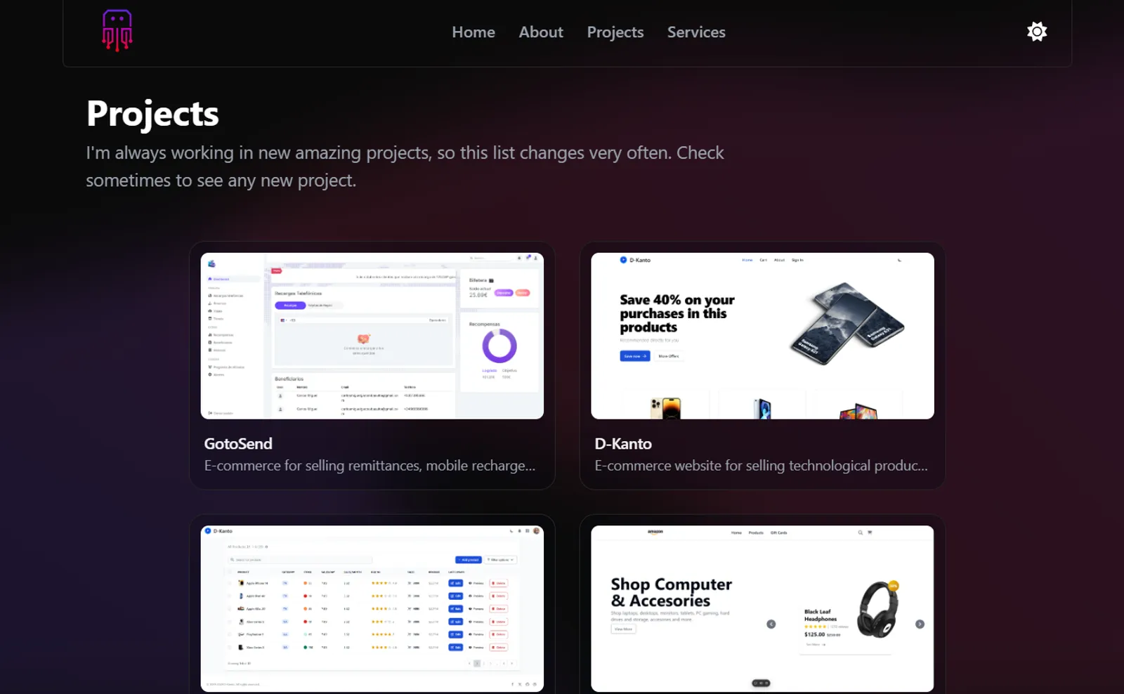 This a modern and minimalist developer portfolio template built with Astro and TailwindCSS. It offers a fast, lightweight, and highly customizable experience for showcasing your projects and skills.