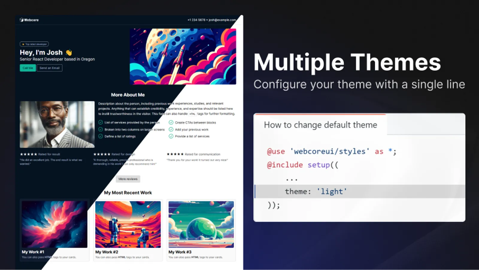 myWork={[ ... ]} {/* Showcase your most recent work */}